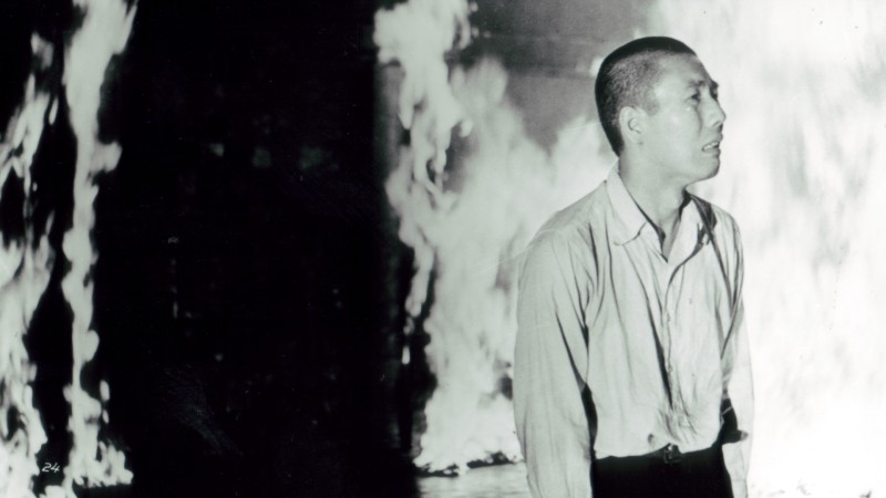 In postwar Kyoto, MIZOGUCHI Goichi (ICHIKAWA Raizo VIII), a stuttering and troubled youth, arrives at Shukaku Temple seeking solace and spiritual purpose as an apprentice monk.